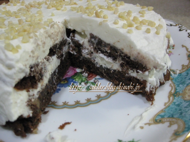 そんなこんなしたおかげで、崩れてしまったケーキ...。