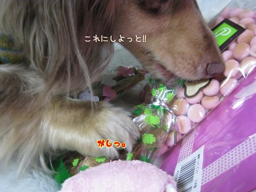 きれいに写真撮ろうと頑張ってたけど、2匹はもうプレゼントに夢中...。