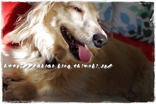 ケージと窓の間の、狭~い場所に入ってって、日向ぼっこ...兼...お庭の観察...(笑)