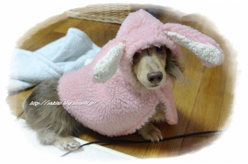 年賀状作成に向けて、ウサギさんポンチョ作ってみました。