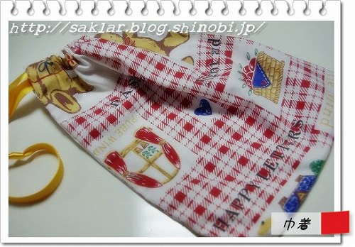 ミシン購入時に、プレゼントでついてきた材料で、巾着~!