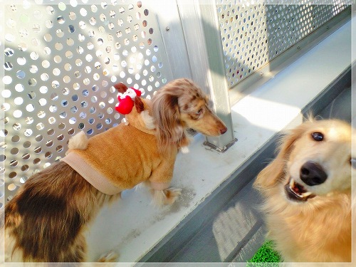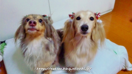 本日のクリスマスは、半手作りデコレーションケーキで、2ワンともにお祝い(*^▽^)∠※