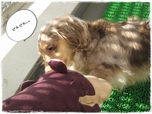 そんなに必死にならなくても...。 またちゃんと明日もお散歩行くから(^▽^;)