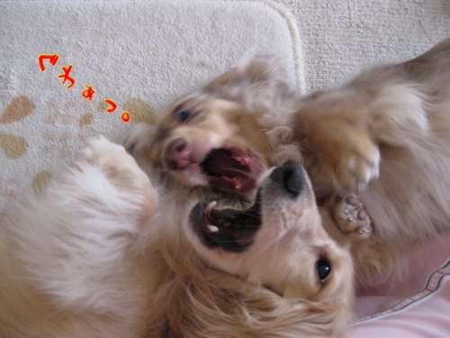 その音にも2匹はビクビクして、部屋の中を行ったりきたり、落ち着かない様子でした。