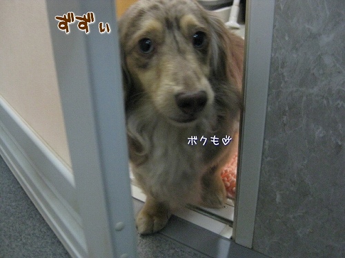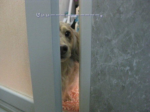 中に入りたいのか、一生懸命鼻でドアを押し開けて、のぞいてみたり、足だけ差し出してみたり...。