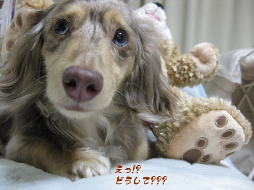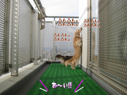 まぁまぁ、ご丁寧にこれを端っこによけて、冷たい床の上に座って待ってました...。