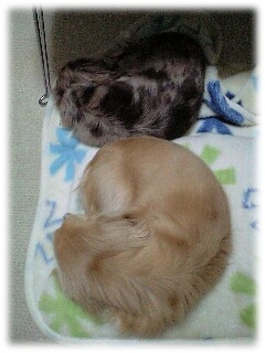 今日は雨ですねぇ… 特に何をするでもなく、 3匹でゴロゴロしております!! SAKURAは遊びつかれてゴロン ママの背中で寝ていたKLARは、 ずるずると滑り落ちていき、 このような状態に 寝相が悪いから、 そんなんなるのよ